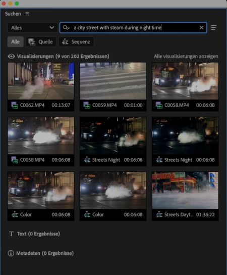 Beispiel: Neue Adobe Premiere Media Intelligence Funktion