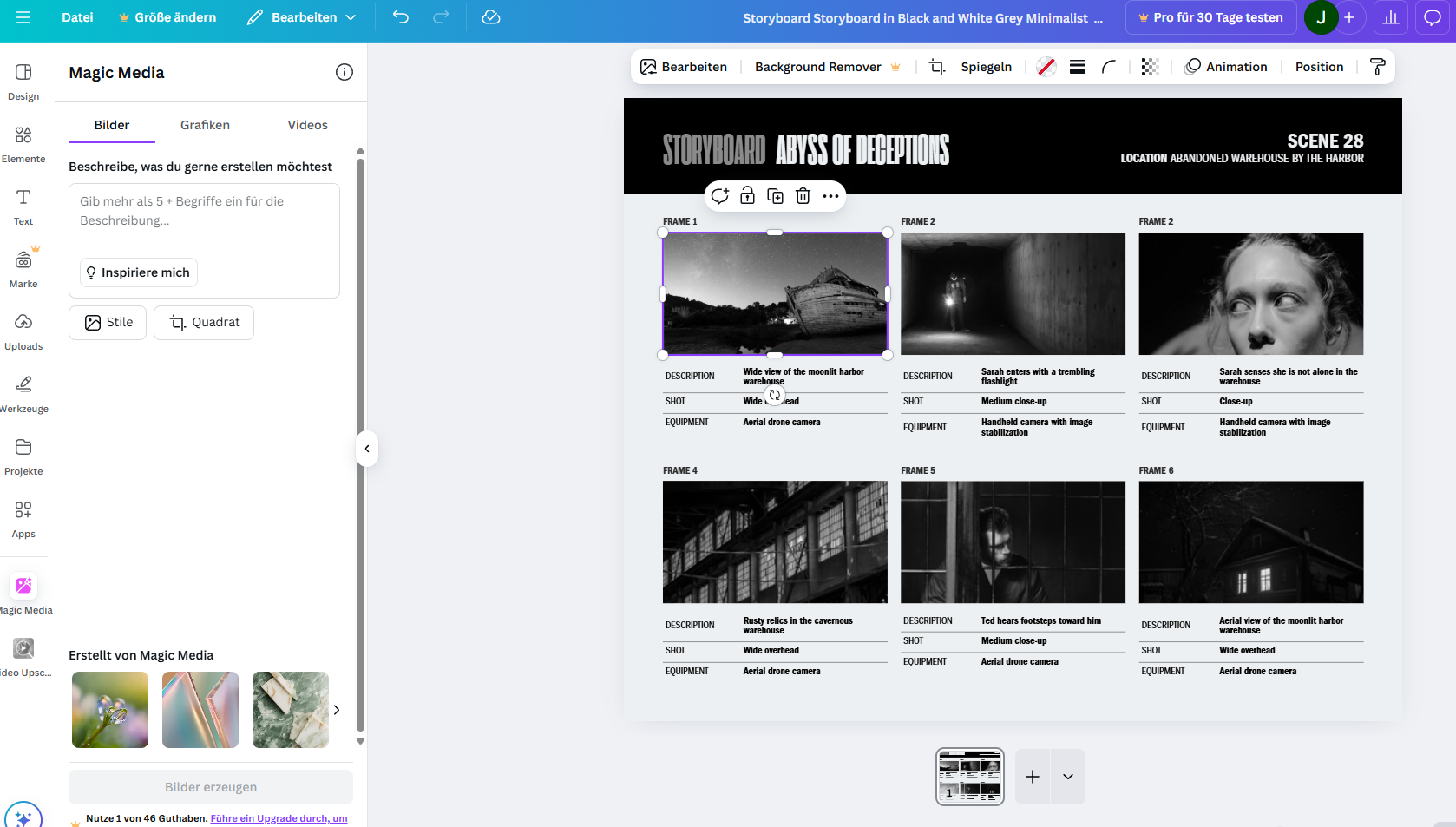 Beispiel: Canva Storyboard Template und Magic Media KI Funktion